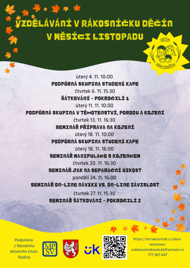 Rákosníček Děčín je místem, kde se potkává celá rodina. Nabízíme dětem hravé a bezpečné prostředí – od dětských skupin a zážitkové tělocvičny přes tvořivé kroužky, příměstské tábory a hlídání až po podporu pěstounů. Myslíme i na rodiče a seniory, pro které připravujeme cvičení, vzdělávací i odpočinkové programy. Naším cílem je vytvářet prostor, kde si každý člen rodiny najde své místo, může se rozvíjet a zároveň trávit společný čas. Nově u nás najdete i kouzelnou multisenzorickou místnost Snoezelen, kde děti i dospělí zažijí jedinečné chvíle plné klidu a objevování.