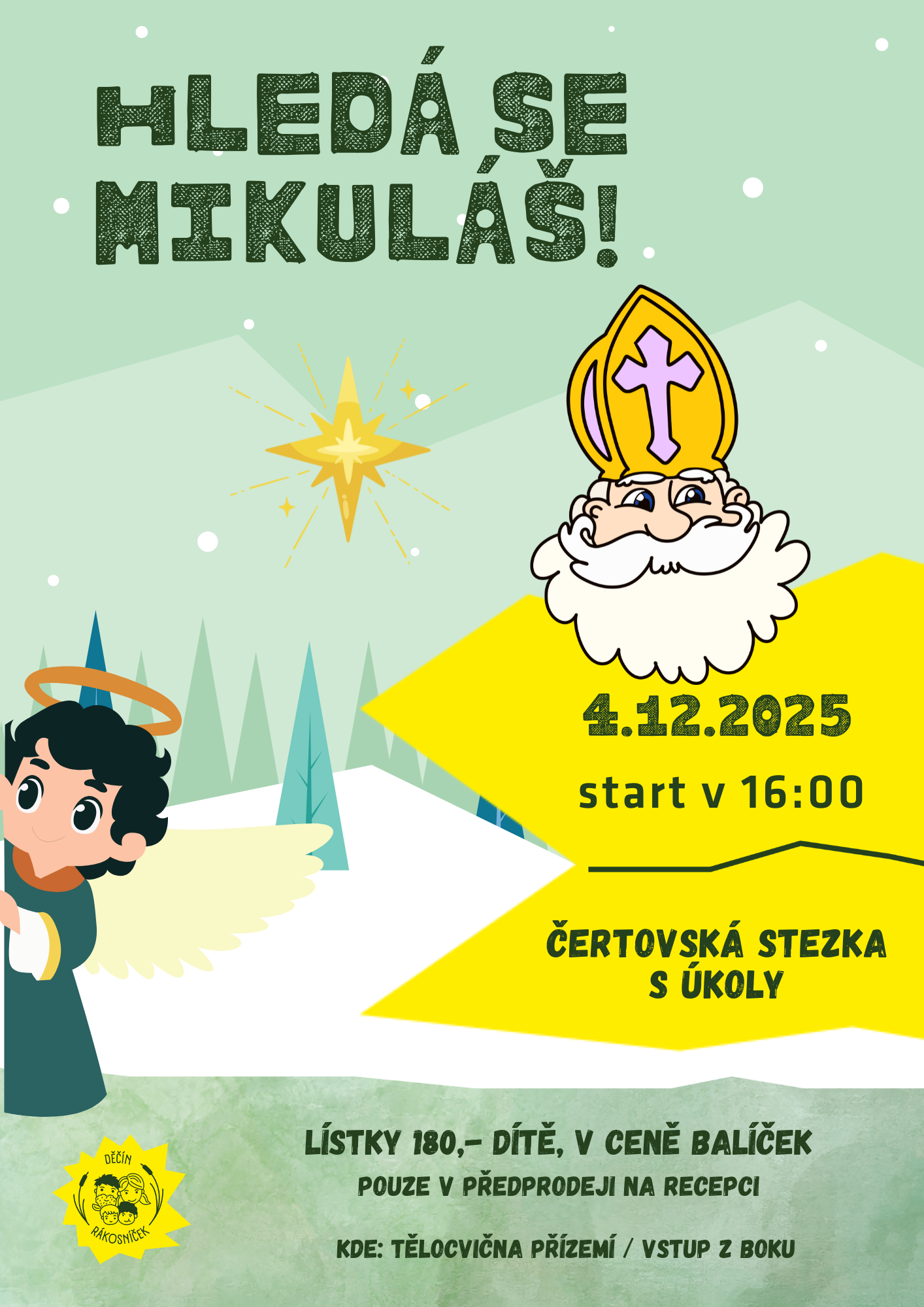 HLEDÁ SE MIKULÁŠ! Přijďte si užít kouzelnou mikulášskou stezku plnou zábavy, úkolů a překvapení! Na naší Mikulášské stezce potkají děti čerty, kteří pro ně mají připravené různé úkoly a výzvy . Nebojte, čerti jsou přísní, ale spravedliví – a všechny děti, které zvládnou stezku až do konce, čeká setkání s Mikulášem a andělem, kteří je odmění za […]