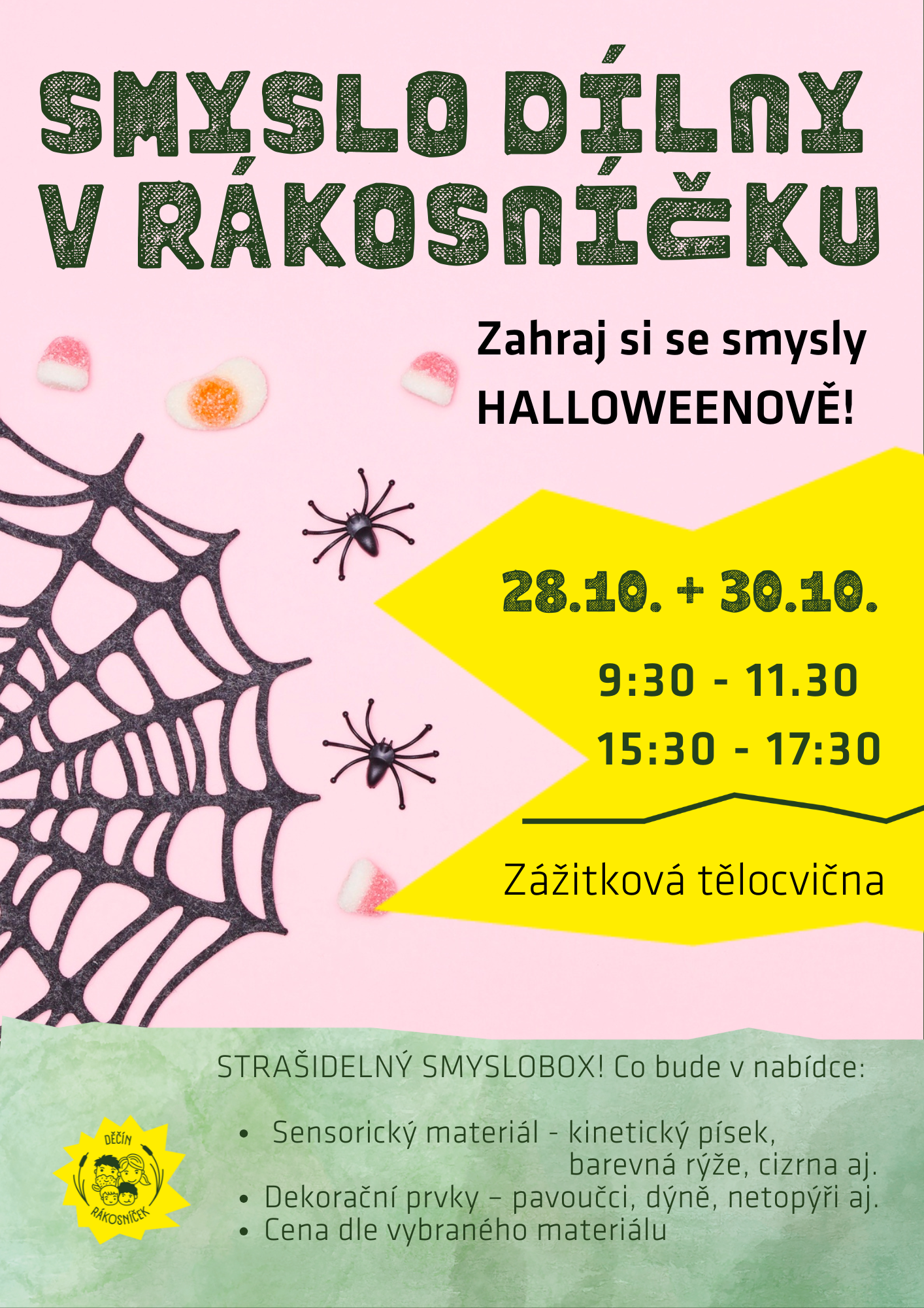 • Smyslodílny aneb vyrob si svůj halloweenský smyslobox! Co bude k dispozici? Domácí, voňavá a krásně měkká modelína Sensorický materiál - barevná rýže, těstoviny a cizrna Vlastní netoxické halloweenské dekorace, razítka, válečky a vykrajovátka z 3D TISKU!! V úterý 28.10. a ve čtvrtek 30.10. , v čase 9:30 - 11:30 a 15:30 - 17:30!