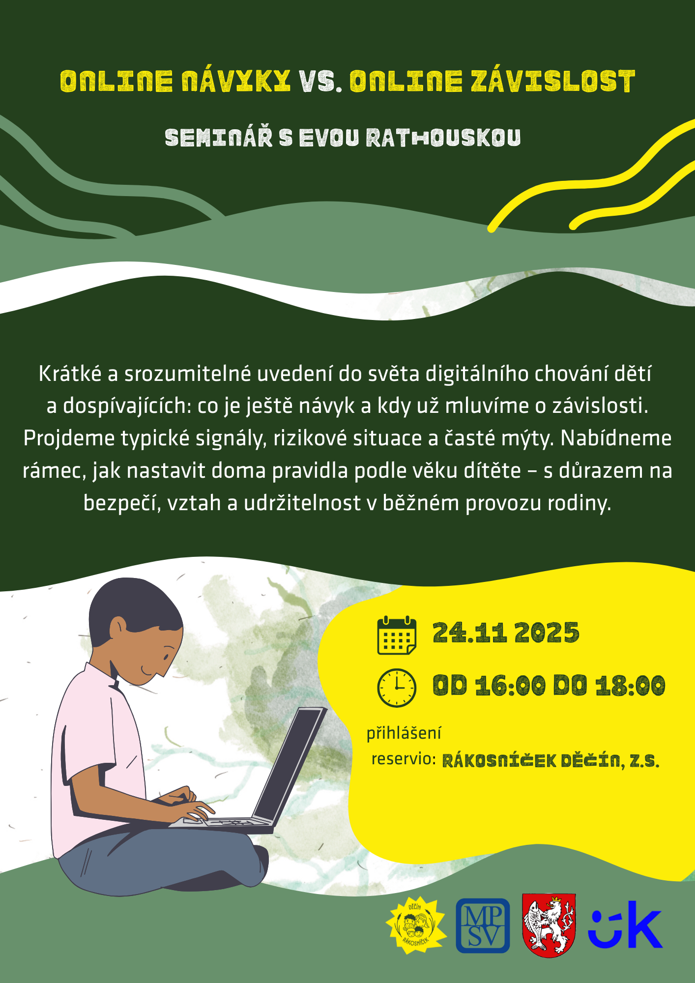 Krátké a srozumitelné uvedení do světa digitálního chování dětí a dospívajících: co je ještě návyk a kdy už mluvíme o závislosti. Projdeme typické signály, rizikové situace a časté mýty. Nabídneme rámec, jak nastavit doma pravidla podle věku dítěte – s důrazem na bezpečí, vztah a udržitelnost v běžném provozu rodiny. Lektorka -Eva Rathouská